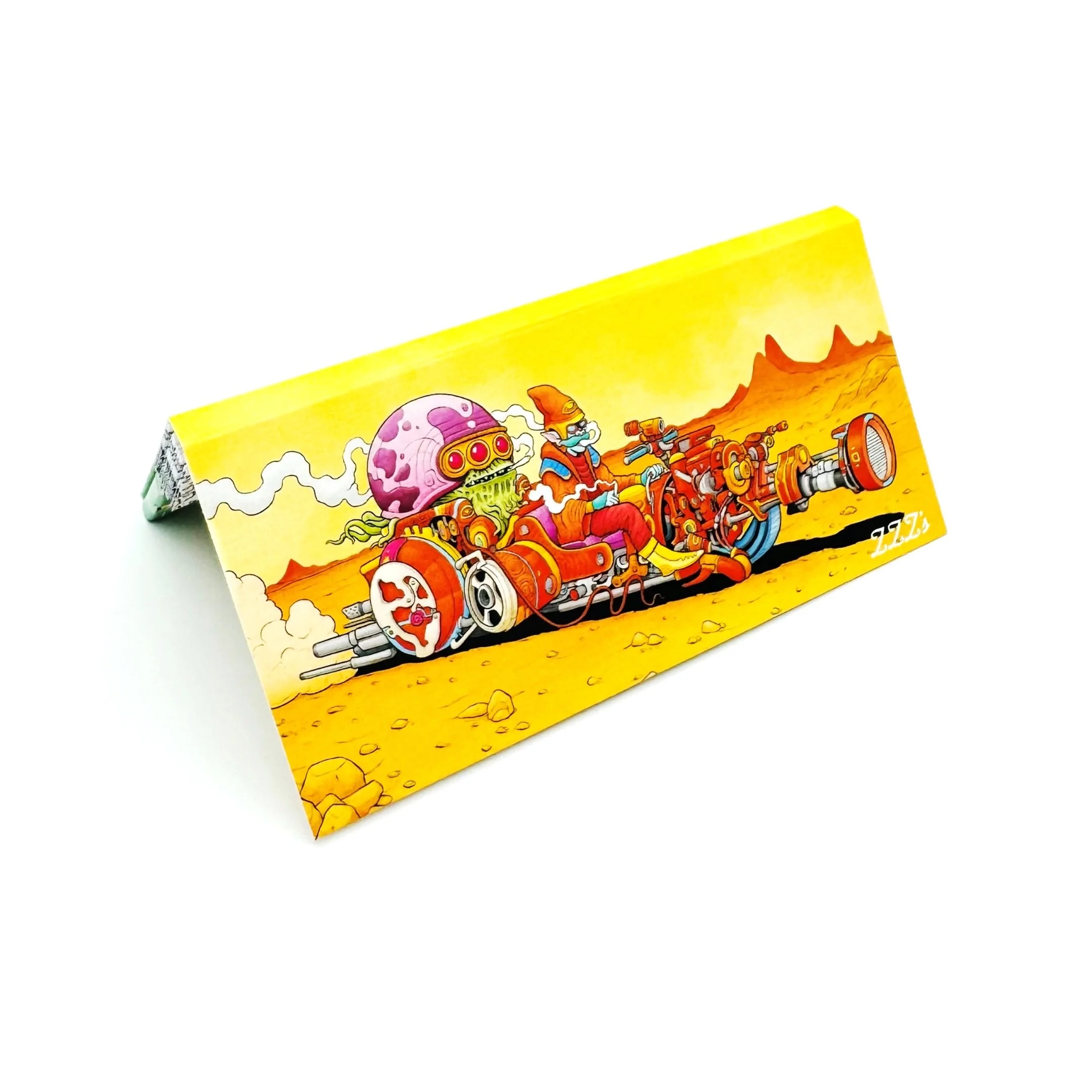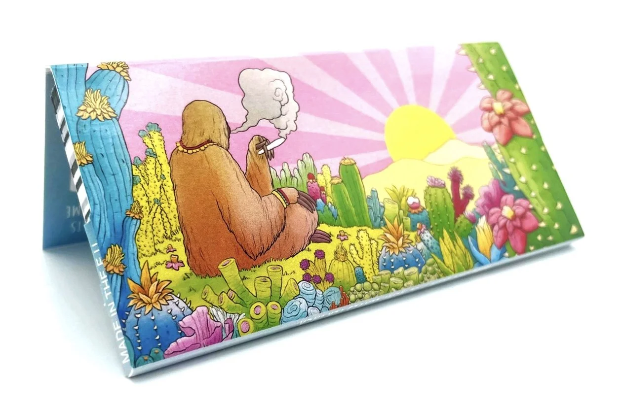 His designs have been featured on rolling papers and rolling trays, including ‘Stoner Sloth’ and ‘Desert Racer’.